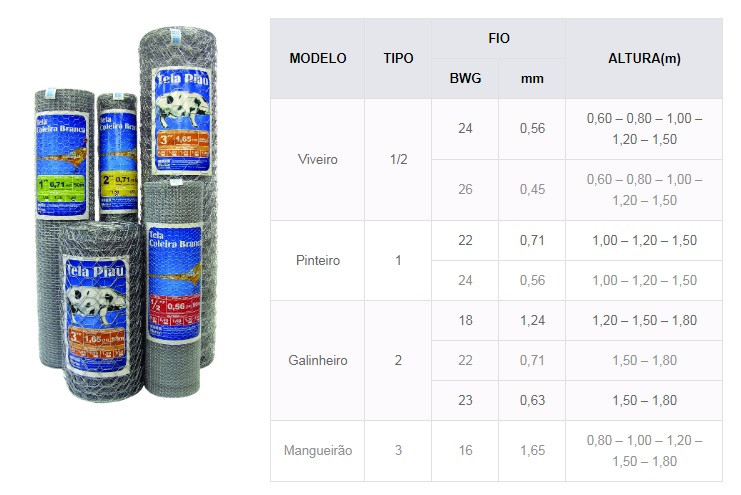 A tela hexagonal também conhecida como tela galinheiro é utilizada para a criação de animais, reforço de argamassa na construção civil e outras diversas aplicações na indústria.